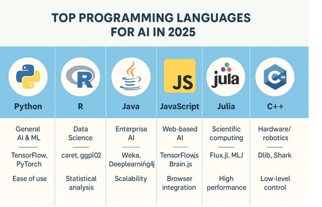 Each language excels in different aspects of AI development. Here’s a quick summary: